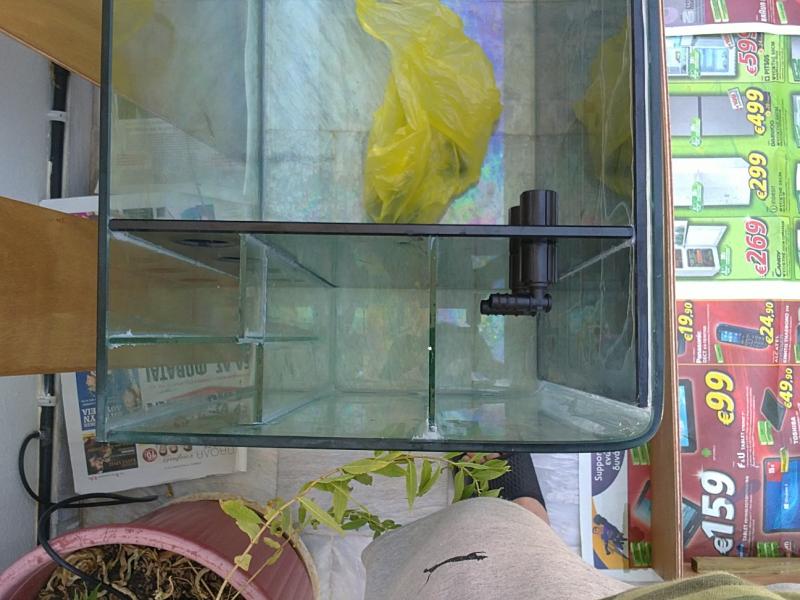 Τον Ιούλιο χαρίζανε σε έναν γνωστό μου ένα ενυδρείο, μου είπε πως ήταν ραγισμένο και ότι θέλει επισκευή. Του είπα να το πάρει να το δούμε σε τι κατάσταση είναι και το πολύ πολύ να το διαλύαμε να κρατάγαμε τα καλά τζάμια και να φτιάχναμε ένα άλλο. Όταν το έφερε και το είδα ,είχε ένα χτύπημα στην οθόνη και από εκεί ξεκίναγε ένα ράγισμα που έφτανε μέχρι τα μέσα του ενυδρείου. Το ενυδρείο έχει διαστάσεις 151Μ Χ 46Π Χ 58Υ γύρω στα 350 λίτρα ωφέλιμο άδειο. Επίσης από ότι κατάλαβα με τα λίγα που ξέρω πως το ενυδρείο είναι εργοστασιακό γιατί η οθόνη είναι κουρμπαριστή με τα πλαϊνά, δηλαδή το ενυδρείο έχει 3 τζάμια και όχι 5. Αν το διαλύαμε θα μας μένανε 2 τζάμια και θα έπρεπε να αγοραστούν τα άλλα 3. Του πρότεινα λοιπόν επισκευή. Για αρχή να το ζορίσουμε για να φτάσει το ράγισμα μέχρι την άκρη γιατί ξέρω πως είναι απρόβλεπτο ένα ράγισμα που θα φτάσει ή προς τα πού θα πάει. Έτσι και έγινε, τα ράγισμα έφτασε στο κορυφή και ξέραμε πλέον τι έχουνε να σταθεροποιήσουμε. Η επόμενη κίνηση ήταν να γίνει επισκευή. Του πρότεινα λοιπόν να πάρει ένα τζάμι όσο είναι οθόνη από την εσωτερική πλευρά. Τα τζάμια του ενυδρείου είναι δεκάρια, πήρε λοιπόν δεκάρι, το κολλήσαμε από τη μέσα μεριά. έμεινε 4-5 μέρες έτσι να στεγνώσει και μετά φτιάξαμε και το εσωτερικό φίλτρο. Έτσι λοιπόν η οθόνη έγινε πλάτη και η πλάτη οθόνη. Το καλό στην ιστορία πως και τα έξτρα τζάμια τα πήρε και αυτά τζάμπα γιατί κάποιος τζαμάς του είχε μια υποχρέωση και έτσι έως τώρα το ενυδρείο του έχει κοστίσει 2-3 σιλικόνες από Praktiker, δηλαδή 10 Ευρώ περίπου. Μετά το ενυδρείο έμεινε κάνα μήνα γεμάτο νερό ταυτόχρονα ο φίλος έφτιαχνε τη πλάτη με dow και d1 , κάτι σαν πετρότοιχο, ωραίο, απλό και λιτό. Έμεινε κάνα μήνα ακόμα πάλι με νερό και τη πλάτη μέσα, μεσολάβησαν και διακοπές. Μετά του είπα να αγοράσει γωνίες αλουμινίου 2,5 εκατοστών, κόπηκαν, βάφτηκαν, μόνο από έξω ε, και κολλήθηκαν με σιλικόνη σε όλες τις ακμές του ενυδρείου. Έμεινε 2-3 μέρες έτσι , καθαρίστηκε καλά ότι είχε απομείνει και επιτέλους μετά από 2,5 μήνες μπήκε στο σαλόνι, εκεί γέμισε με νερό, έτρεχε μια βδομάδα μόνο με άνθρακα, Παρασκευή βάλαμε αμμωνία από το φαρμακείο και το Σάββατο μπήκε 13 λίτρα ελαφρόπετρα, ένα σακί από Praktiker και γύρω στο ένα λίτρο από το δικά μου ενυδρεία για μπόλι, μπήκαν σφουγγάρια και filter wool, και του έριξα 20 λίτρα νερό με «μπίχλα» από το δικό μου το μεγάλο ενυδρείο, ευκαιρία να κάνω τη τρίμηνη συντήρηση στο δικό μου. Το γέλιο είναι πως έκανε όταν είδε πως έγινε το νερό όταν βάλαμε την ελαφρόπετρα, παρόλο που ήταν πλυμένη και βρασμένη το έκανε κάτασπρο το νερό, και όταν έριξα το μπόλι το νερό έγινε μαύρο. Σε 15 με 20 λεπτά όμως το νερό ήταν κρύσταλλο. Ξέχασα να σας πω πως το ενυδρείο τρέχει με 2 αντλίες 800 Λίτρα/Ώρα SUN-SUN. Μέσα σε μια εβδομάδα το νερό είχε μόνο νιτρικά στο φουλ και καθόλου αμμωνία ή νιτρώδη, και έτσι το Σάββατο που μας πέρασε μπήκαν και οι πρώτοι κάτοικοι. Στη πραγματικότητα μεταφέρω τη δικιά μου ψαρο-σουπό-σαλάτα στο δικό του ενυδρείο για αρχή και μετά να δούμε τι θα κρατήσει και τι θα χαρίσει, μπήκαν 2 Pleco, 2 CAE, 6 Zebra Danio 1 Apple Snail και θα μπουν ακόμα 4 Σκαλάρια, 2 ή 4 SAE, 2 ή 4 Botia Clown, 2 Buenos Aires Tetra, 1 Roseline Barb.