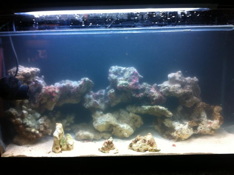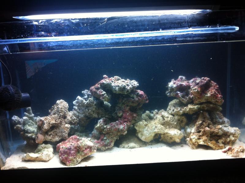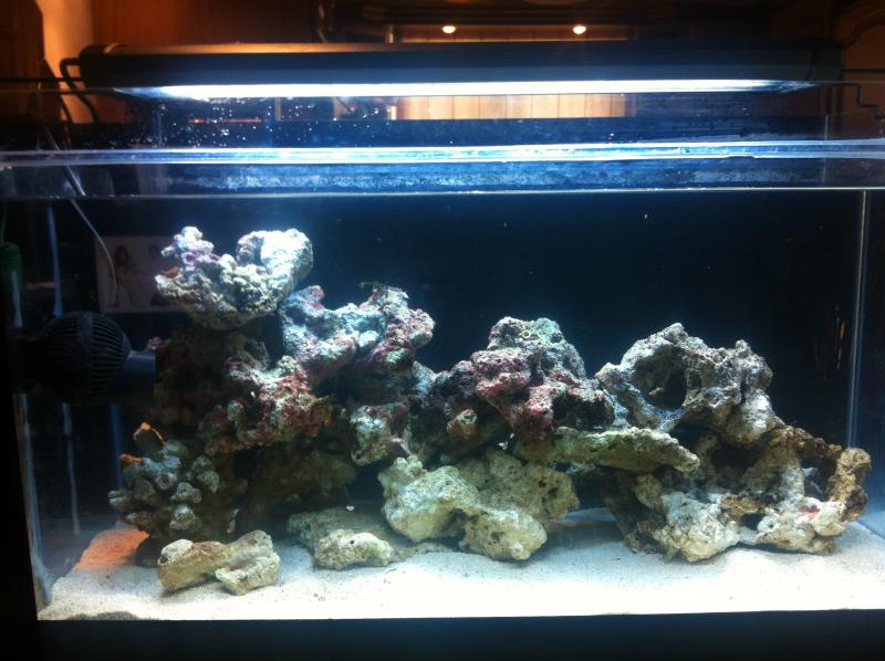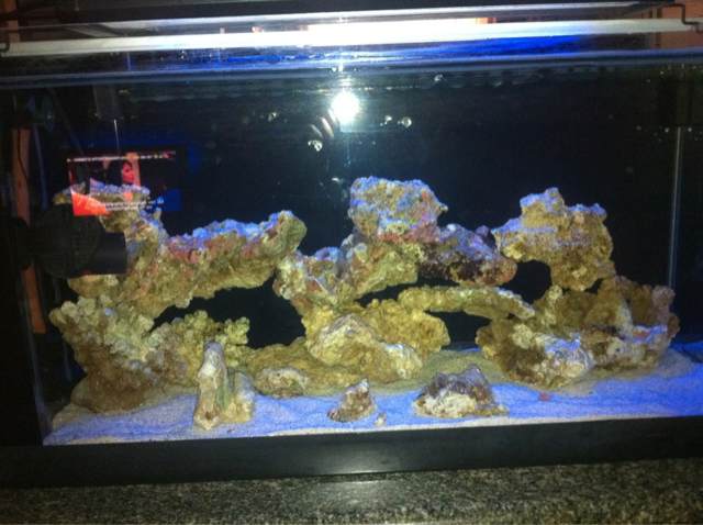 Καλησπερα φιλαρακι και καλη αρχη!φτιαξε το βραχο σου οπως σ αρεσει απλα καλυτερα να νεκρα κομματια να τα βαλεις στο κατω μερος!μαζι με τον ανθρακα βαλε κ αντιφωσφορο.μετρησεις κανε τα βασικα για τωρα δλδ αμμωνια νιτροδη και νιτρικα και αν τα βρει αμμωνια και no 2 μηδεν και no 3 εως 20 βαλε κανενα ζωντανο. Τα φωτα παρε ενα χρονοδιακοπτακι και αναβε τα κανενα 8ωρο.ποσα watt ειναι και τι φωτα εχεις??