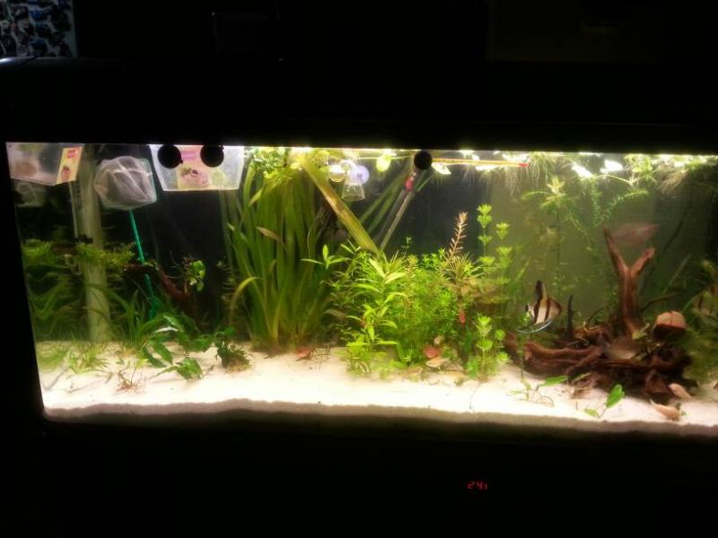 Σε 210 λίτρα , με διάφορα φυτά από δύσκολα μέχρι εύκολα, από φως 2Χ39w (Day Light +grolux) και μια 24w grolux περίπου 0.6w/ l