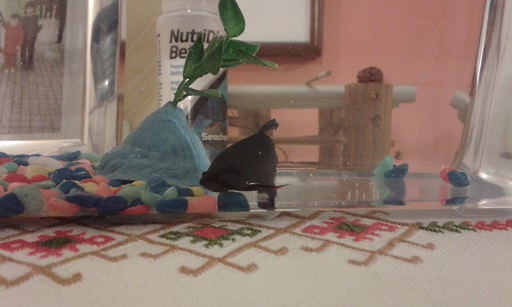 ο μπλε μονομαχος μας, εφτασε στο σπιτι μεσα σε μια πλαστικη γυαλα 1/2 λιτρου!! αγοραστηκε απο πλανωδιο με οδηγιες οπως 'τροφη μια φορα στις 3 μερες και αλλαγη νερου μια φορα τη βδομαδα !! η τροφη ηταν 'φυλλαρακια' απο αυτα που τρωνε απο χρυσοψαρα μεχρι ...καναρινια! τον γυρισα αμεσα πισω και πηρα την μεγαλυτερη γυαλα που ειχε (3 λιτρων και…2 μπουκαλια εβιβα απο το λιντλ....! ) συν χρωματιστα βοτσαλακια κι ενα μινι φυτο πλαστικο 'φυσικα' !! το ψαρακι ηρθε λοιπον μετα απο επιθυμια του γιου μου ,που την εκτελεσε η συζηγος αλλα τελικα ο ''μπελας'' κατεληξε σε μενα (χμμμ καλο ονομα το μπελας!!) απο 25 μαρτιου ο ψαρης εζησε στη γυαλα αυτη μεχρι και 6/7/14 χωρις φιλτρα,θερμοστατη κλπ πολυτελειες για πολλους λογους....του αλλαζα νερο καθε 3 μερες (ειπαμε ...εβιβα!) και πηρα τροφη της seachem ειδικη για bettas... παραλληλα αρχισα και το ψαξιμο στο δικτυο οποτε καπως ετσι 14/4 γραφτηκα και στο GAB το οποιο βεβαια παρακολουθω ανελλειπως απο τοτε... διαβαζοντας λοιπον ολο και πιο πολλα γενικα για τα ενυδρεια αλλα και ειδικοτερα για τον μονομαχο ,ο ενθουσιασμος αλλαζε θεση με την...απογοητευση και αντιστροφα! ενθουσιασμος για τα οσα διαβαζα αλλα ειδικοτερα εβλεπα (τα ενυδρεια ηταν κρυφος καημος πολλα χρονια) και απογοητευση για οσες λεπτομερειες δεν γνωριζα και ανεβαζαν τον βαθμο δυσκολιας ΚΑΙ κοστους σε επιπεδα μαλλον απροσιτα... αρχισα αμεσα το ψαξιμο για ενυδρειο και εφυγα τρεχοντας απο τα πετσοπ μολις ειδα τιμες...πηγα σε τζαμα της περιοχης οπου μαλλον πιο φτηνα θα ερχοταν αλλα και παλι αν ξεκιναγα με 100 ευρω για την γυαλα μονο τοτε με ενα προχειρο υπολογισμο μαλλον ο ψαρης θα εμενε στην... γκαρσονιερα για καιρο! ευτυχως γι αυτον ομως ,ο αδερφος μου που του το ανεφερα ,ειχε ενα ενυδρειο σε αποθηκη για καιρο το οποιο χαρισε στον ανιψιο του! μαζι μ ενα φιλτρο αγνωστης μαρκας με καποια υλικα καινουργια, θερμαντηρα και φιλτρακι... το ενυδρειο ειναι της aquael το οποιο ειχαν προσφορα στα καρφουρ και ειχε μεινει αχρησιμοποιητο μετα την αγορα του για 2 τουλαχιστον χρονια... αρχισα το ψαξιμο 'εντατικα' για να στησω το νεο σπιτι του μαγκα αλλα απο μεσα Μαιου που ειχα το ενυδρειο στα χερια μου μολις πριν λιγες μερες καταφερα να τον ριξω μεσα... τα στοιχεια του ενυδρειου ρειναι τα εξης > ενυδρειο 60μχ45υχ30π = 80λιτρα πλαστικο καπακι με λαμπα 11βαττ aquael φιλτρακι εσωτερικο μινι aquael heater 100 watt εξωτερικο φιλτρο project 400 (??) προβληματικο μαζι με καποια υλικα (ανθρακα,μακαρονι,πολυεστερικη βατα)...