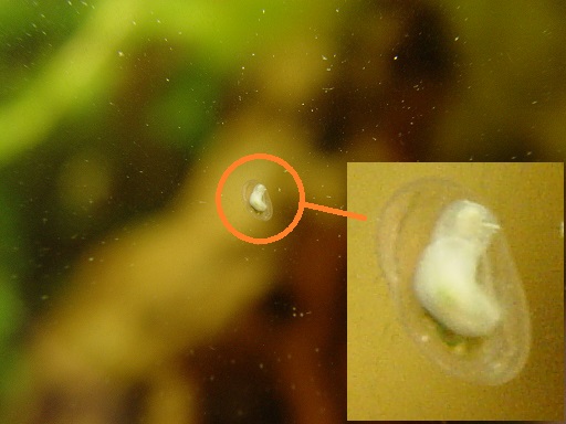 ενα 'κοχυλι' στο χαλικακι! το ειδα κι εγω και οντως εμοιαζε με κοχυλι αλλα πρεπει να ΗΤΑΝ σαλιγκαρι με καποιο στριφτο μυτερο καβουκι... εχει γουστο λεω να εχω λαθρεπιβατες κλπ (οτι διαβαζα δλδ...)αλλα τελικα ηταν...αδειο! αργοτερα εμφανιστηκε σιγα σιγα η hair algae ( αλγη μαλλια ..κουβαρια) - πιαστηκε στην cabomba και ευδοκιμησε καλα! της εκανα ενα ψιλοκαθαρισμα αλλα δεν με ανυσηχησε κι ολας... μεχρι που κατι μικρο λευκο 'στρογγυλο' αρχισε να γεμιζει τα τζαμια....Freswater Limpet: Acroloxus lacustris !! μετα το σχετικο διαβασμα ...ησυχασα και αφησα κι αυτο στην ησυχια του! καποια στιγμη εκανα ενα ψιλοκαθαρισμα , δοκιμασα και τη 'σκουπα' ,κλαδεψα ελαφρως το κερατοφυλλο ,εβαλα ενα θερμομετρο ,εδεσα καλυτερα την anubia που με το ζορι πεταξε ενα φυλλαρακι και ημουν ετοιμος να παραλαβω τα τεστακια να ξεμπερδευω επιτελους!!