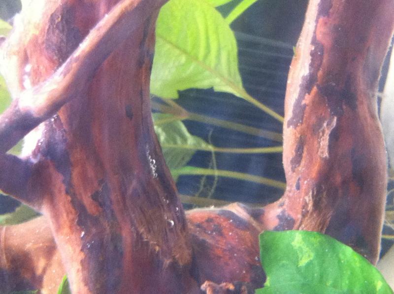 Μήπως έκανες αλλαγή νερού και η στάθμη κατέβηκε κάτω από το σημείο που είναι οι φυσαλίδες ; Αλλιώς μπορεί το ξύλο να έχει εγκλωβισμένο αέρα ακόμα μέσα του