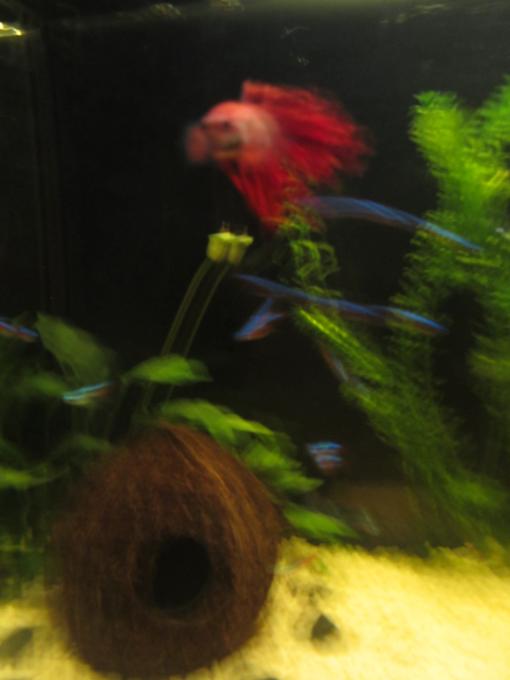 Διαστάσεις: 58x30x40 Όγκος: καθαρά 60Lt Κατηγορία: Κοινωνικό, φυτεμένο Φυτά: Λίγα απο όλα (σύντομα και κανα φυτούδι επιφάνειας) Ψάρια / Άλλα είδη: x1 Betta, x5 Neon Tetra, x4 Cardinal Tetra, x3 Amono Shrimp (και 1-2 σαλιγκάρια λαθρεπιβάτες) Διακοσμητικά υλικά: Άσπρο χαλίκι, Ξύλο, Καρύδια και μερικες πετρούλες μαυρες Φόντο: Μαύρο Φωτισμός: 3 Strip Bar LED 12V Διάρκεια φωτισμού: 9 ώρες Φιλτράρισμα: JBL cristalprofi i100 Θερμοστάτης: Sicce Scuba 100W Λίπανση: υγρό λίπασμα JBL Ferropol Παροχή CO2: - Παράμετροι: pH: 6,8 Γενική σκληρότητα (GH): Ανθρακική σκληρότητα (ΚΗ): Αμμωνία (ΝΗ3): 0 Νιτρώδη (ΝΟ2): 0 Νιτρικά (ΝΟ3): 10 Αλλαγές νερού: 20% κάθε εβδομάδα Θερμοκρασία: 25 Άλλες πληροφορίες: Φωτογραφία: ΥΓ: Συγνώμη για τις φωτογραφίες! |