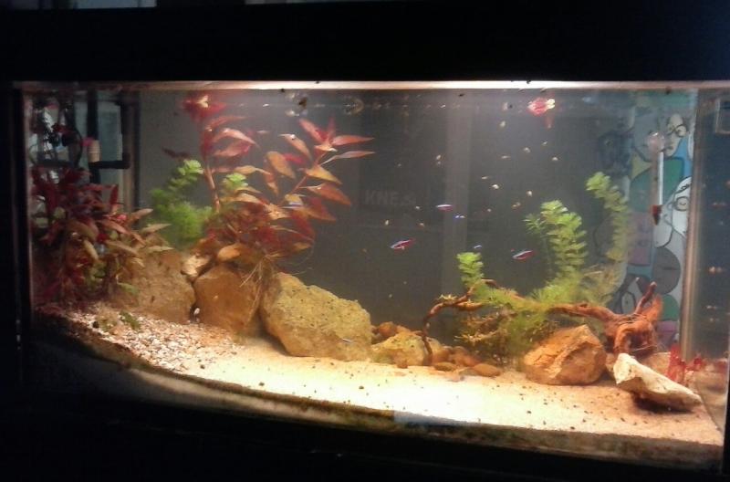 Θα ηθελα να κανω μερικες παρατηρησεις για βελτιωση, σκεπτομενος τι θα εκανα εγω: 1. Ιχθυοσυνθεση: εχεις ψαρακια που απαιτουν μαλακο νερο (corydoras, tetras) και ψαρακια που απαιτουν σκληρο νερο (guppies). Στη θεση σου θα κρατουσα ενα απο τα δυο, αναλογα με τι μπορω να τους προσφερω. Μελετησε το προφιλ των ψαριων που φιλοξενεις, θα σε βοηθησει. 2. Μετρησεις ph, gh, kh. Χωρις αυτες δε μπορουμε να γνωριζουμε για ποιο απο τα παραπανω ειδη θα ειναι ιδανικο το ενυδρειο. 3. Τα corydoras καλο ειναι να μεγαλωσεις το κοπαδι, ισως κρατωντας ενα ή δυο το πολυ ειδη. 4. Οι αλλαγες πιστευω οτι θα ηταν καλυτερο να γινονται μεγαλυτερες, π.χ. 30% ανα εβδομαδα. Κατα τα αλλα, μου αρεσει το στησιμο με τις πετρες. Ισως μερικα φυτακια ακομα να βελτιωναν το αισθητικο κομματι.