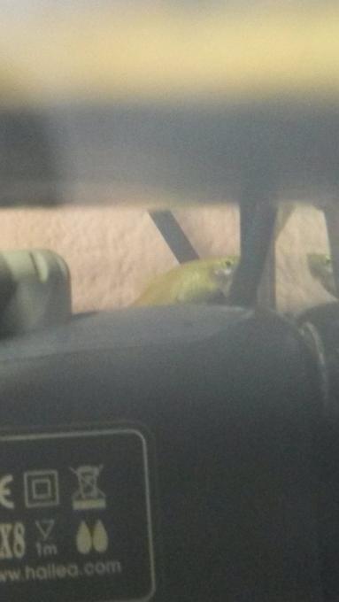ΒΑΣΙΚΕΣ ΠΛΗΡΟΦΟΡΙΕΣ 1. ΔΙΑΣΤΑΣΕΙΣ ΚΑΙ ΟΓΚΟΣ ΕΝΥΔΡΕΙΟΥ: 60 Λίτρα (58χ29χ2 2. ΧΡΟΝΟΣ ΛΕΙΤΟΥΡΓΙΑΣ ΤΟΥ ΕΝΥΔΡΕΙΟΥ: 2 μήνες 3. ΗΜΕΡΟΜΗΝΙΑ ΕΙΣΑΓΩΓΗΣ (ΑΡΡΩΣΤΟΥ) ΨΑΡΙΟΥ ΣΤΟ ΕΝΥΔΡΕΙΟ: 22/10.2015 4. ΘΕΡΜΟΚΡΑΣΙΑ (ΒΑΘΜΟΙ ΚΕΛΣΙΟΥ): 26 βαθμοί 5. ΨΑΡΙΑ (ΕΙΔΟΣ ΚΑΙ ΑΡΙΘΜΟΣ ): 4 ενήλικα guppies (3 θηλυκά, 1 αρσενικό), καμιά δεκαριά μωρά 6. ΑΣΠΟΝΔΥΛΑ (ΕΙΔΟΣ ΚΑΙ ΑΡΙΘΜΟΣ): 1 apple snail 7. ΘΕΡΜΟΚΡΑΣΙΑ ΑΛΛΑΓΩΝ ΝΕΡΟΥ (ΒΑΘΜΟΙ ΚΕΛΣΙΟΥ): 25-26 8. ΣΥΧΝΟΤΗΤΑ ΚΑΙ ΠΟΣΟΤΗΤΑ ΑΛΛΑΓΩΝ ΝΕΡΟΥ: 30% μία φορά τη βδομάδα 9. ΗΜΕΡΟΜΗΝΙΑ ΤΕΛΕΥΤΑΙΑΣ ΑΛΛΑΓΗΣ ΝΕΡΟΥ: 8/11/2015 10. ΣΥΧΝΟΤΗΤΑ ΤΑΪΣΜΑΤΟΣ ΚΑΙ ΕΙΔΟΣ ΤΡΟΦΗΣ: 3 φορές τη μέρα από 2 flakes που τα θρυμματίζω, 1-2 φορές τη βδομάδα τους ρίχνω flakes σπιρουλίνας ή λίγο αγγούρι ΜΕΤΡΗΣΕΙΣ ΕΝΥΔΡΕΙΟΥ 1. ΝΕΡΟ ΕΝΥΔΡΕΙΟΥ: pH: 8 ΝΗ3 (αμμωνια):0 ΝΟ2(νιτρώδη):0 ΝΟ3(νιτρικά):0-5 Οι μετρήσεις γίνονται με υγρά τεστ της API ΣΥΜΠΤΩΜΑΤΑ ΑΣΘΕΝΕΙΑΣ 1. ΨΑΡΙ(Α) ΠΟΥ ΠΑΣΧΟΥΝ: 1 θηλυκό guppy 2. ΔΕΡΜΑ: Φυσιολογικό 3. ΚΙΝΗΤΙΚΟΤΗΤΑ ΚΑΙ ΣΥΜΠΕΡΙΦΟΡΑ ΨΑΡΙΟΥ: όταν δεν κρύβεται κινείται φυσιολογικά 4. ΠΕΡΙΤΤΩΜΑΤΑ (πχ ΦΥΣΙΟΛΟΓΙΚΑ, ΔΙΑΦΑΝΗ, ΧΡΩΜΑ): 5. ΑΝΑΠΝΟΗ (ΦΥΣΙΟΛΟΓΙΚΗ Ή ΑΥΞΗΜΕΝΗ): αναπνέει πιο γρήγορα μόνο όταν κρύβεται 6. ΤΡΕΦΕΤΑΙ? ΕΧΕΙ ΦΥΣΙΟΛΟΓΙΚΗ ΟΡΕΞΗ? : Τρώει κανονικά 7. ΠΟΤΕ ΕΜΦΑΝΙΣΤΗΚΑΝ ΤΑ ΣΥΜΠΤΩΜΑΤΑ: στις 10/11/2015 8. ΑΛΛΗ ΠΑΡΑΤΗΡΗΣΗ: κρύβεται πάρα πολλές ώρες της μέρας πίσω από το φίλτρο όπου κάθεται ακίνητο. Στην αρχή νόμιζα πως ήταν έγκυος αλλά δεν είναι αρκετά φουσκωμένη για να ετοιμάζεται να γεννήσει. Επίσης έχει πιο κόκκινα βράγχια απ' οτι πριν ΠΡΟΗΓΗΘΕΙΣΑ ΘΕΡΑΠΕΙΑ Δεν έχει προηγηθεί κάποια θεραπεία ΑΛΛΑ ΣΤΟΙΧΕΙΑ 1. ΑΠΟΜΟΝΩΣΗ ΣΕ ΚΑΡΑΝΤΙΝΑ? : όχι 2. ΘΕΡΑΠΕΙΑ ΣΤΟ ΕΝΥΔΡΕΙΟ? : όχι 3. ΑΛΛΕΣ ΠΑΡΑΤΗΡΗΣΕΙΣ: Σας επισυνάπτω φώτο από όταν κρύβεται (σόρι είναι λίγο θολές εξαιτίας κακού ζουμ) και από όταν κολυμπάει φυσιολογικά |