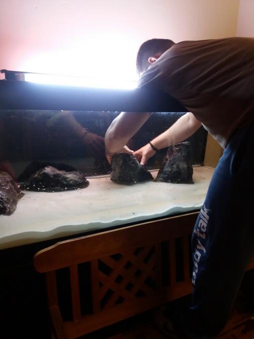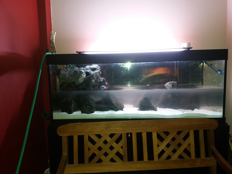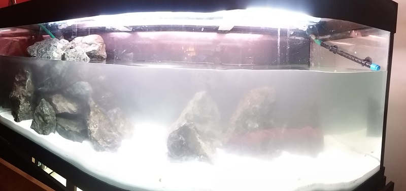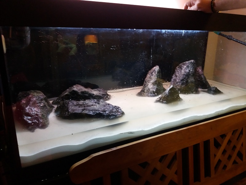 λοιπον το ενυδρειο ειναι σχεδον ετοιμο... πετρες βρεθηκαν σαν αυτες που ηθελα.. αμμος εχει μπει χαλαζιακη ασπρη λεπτοκοκη... εχω ενα θεμα με τον φωτισμο ακομα που δεν το εχω φτιαξει.. οτι και να εχω κανει μεχρι στιγμης οτι ledoταινια και να εβαζα λογο υψηλης θερμοκρασιας απο τους δισκους δημιουργουσε υδρατμους και μου εκαιγε τις ταινιες... εχω βαλει ενα προχειρο φωτιστικο ομως και εχω βγαλει μερικες φοτογραφιες να δειτε την πορεια του ενυδρειου...