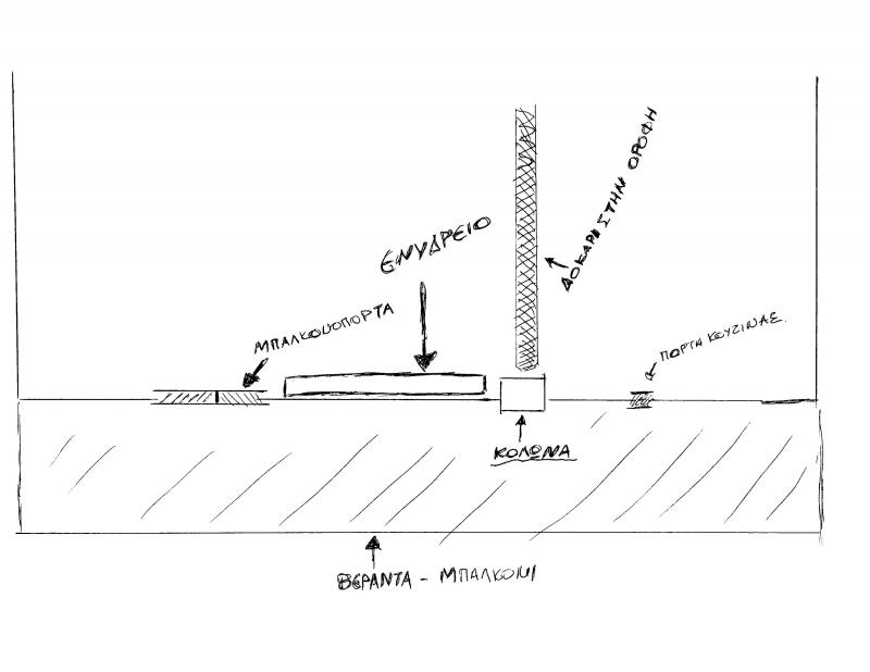 Το δοκάρι αυτό πέφτει επάνω στην κολώνα που είναι και αυτή στην δεξιά πλευρά του ενυδρείου.