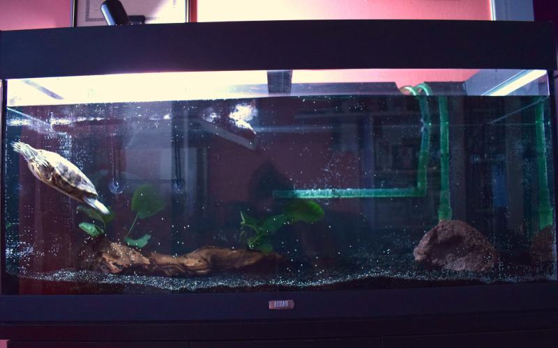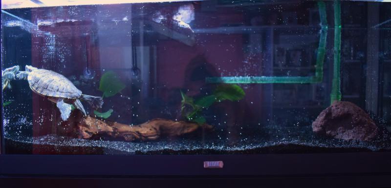 Η χελωνιτσα στην αρχη συγχύστηκε, δεν ηξερε τι να κανει και χαλαγε τον κοσμο καθε φορα που περνουσε μπροστα απο το φιλτρο (δεν εχει συνηθισει τοσο δυνατη ροη μαλλον). εδω και 3-4 ωρες δεν εχει σταματησει να κολυμπαει και να περιεξεργαζεται φυτα-ξυλο-πετρα-γυαλι του φαινονται παραξενα, κατι που με ανυσηχει αφου ολη αυτη την ωρα δεν εχει ανεβει στο bansking να ξεκουραστει..