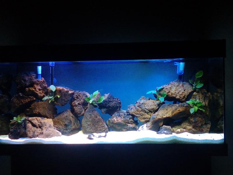 Καλησπέρα κ καλη αρχη...σίγουρεψου οτι ο τροπος που εστησες τις πετρες σου δεν ειναι επιφοβος να κυλισουν και να σκασουν σε καποιο τζαμι σε περιπτωση που κουνηθει το ενυδρειο η μπει χερι μεσα η σκαψει καποιο ψαρι και κουνηθει καποια απο τις απο κατω πετρες..!!